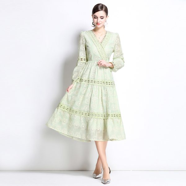 Be the first to review “Embroidery long dress lantern sleeve formal dress” Cancel reply